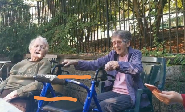 8月中旬時,我三姐從美國來溫哥華探訪爸爸。之前她在視頻和電話裡已經聽了很多關於Mary的事;我們兄弟姐妹在每週六早上家庭禱告讀經的時候也會為她禱告,因此這次來她也盼望能見到Mary。姐姐到後開始幾次去看我爸爸,我們都是坐在護理院前面的涼亭裡聊天,只看見Mary憂傷地坐在落地窗前面,向我們招手,還試著想開門;可由於護理院有規定,失憶的住戶不能單獨出來。